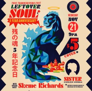 Playing the Leftover Soul 5 year anniversary at Sister Bar on the biggest party night of the year, Thanksgiving Eve.